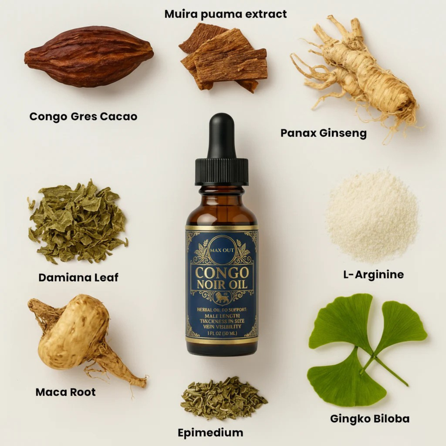 Congo Noir Oil is formulated with eight high-quality, pharmaceutical-grade botanicals designed to support the two core elements that influence visible growth: circulation and tissue flexibility.